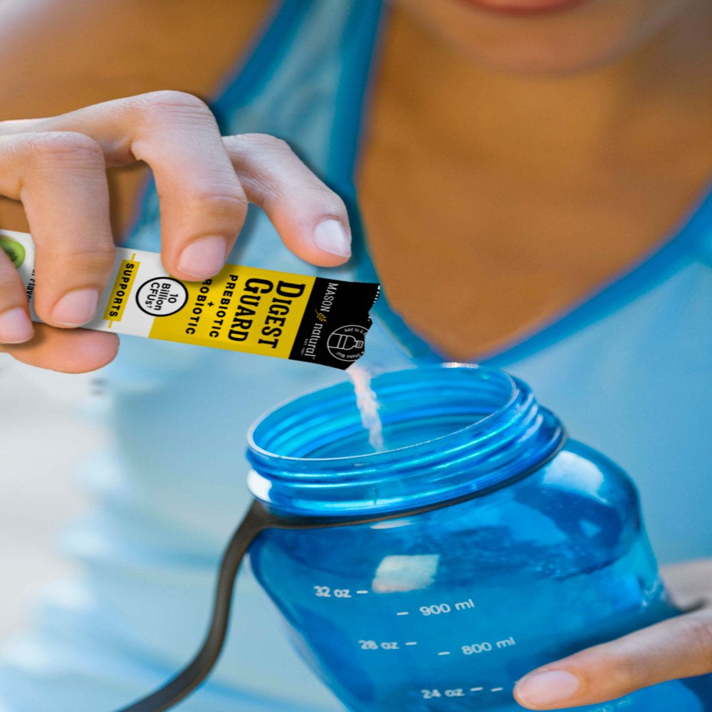 Mason Natural Digest Guard Prebiotic + Probiotic - for a Healthy Gut, Improved Digestive and Immune Function, Nutritious Hydration, Strawberry Kiwi Drink Mix, 14 Quick Dissolve Stick Packs