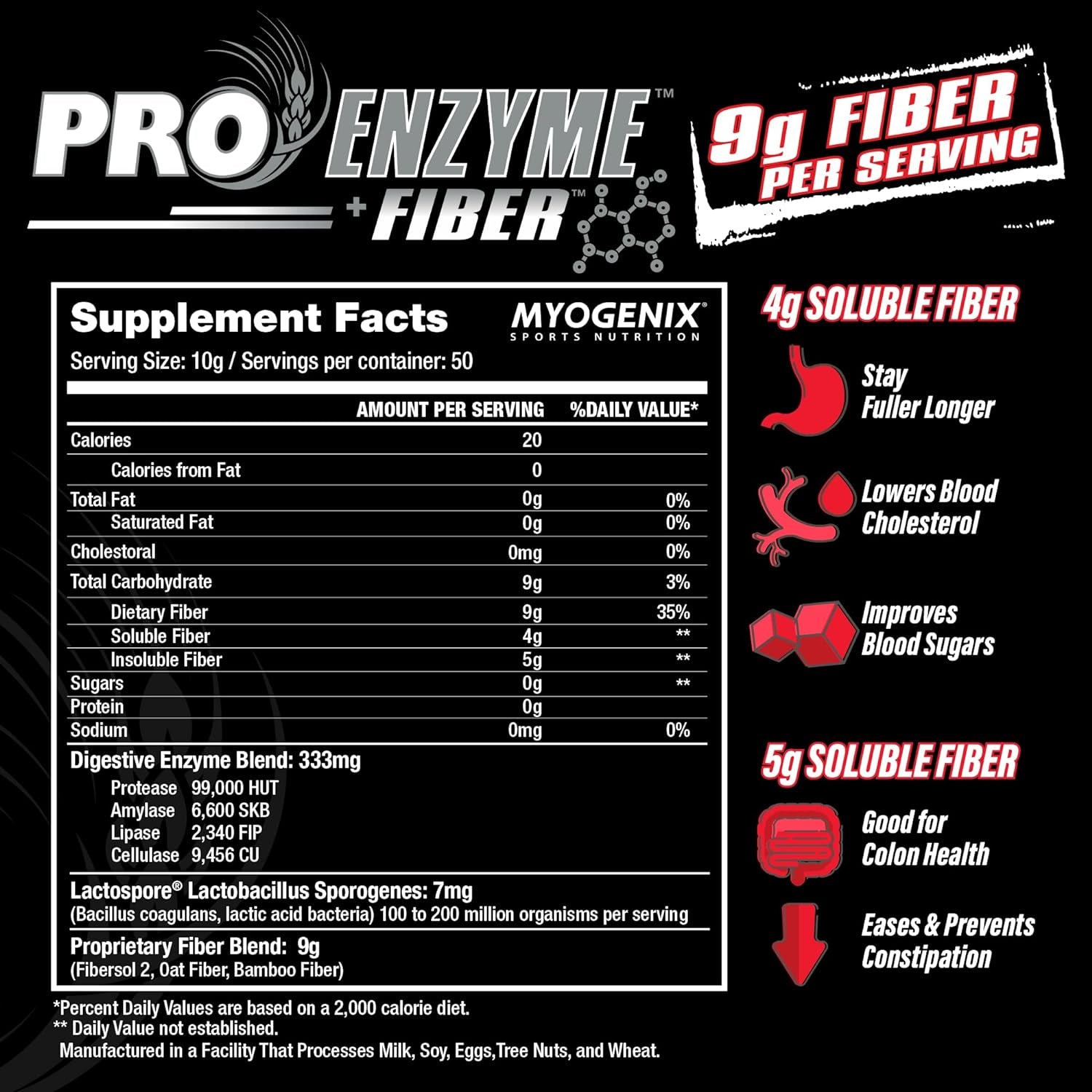 Myogenix Pro Enzyme Fiber Supplement - Digestive Enzymes with Probiotics and Fiber to Support Intestinal and Digestive Health, Fiber Supplement for Women and Men (500 Grams)