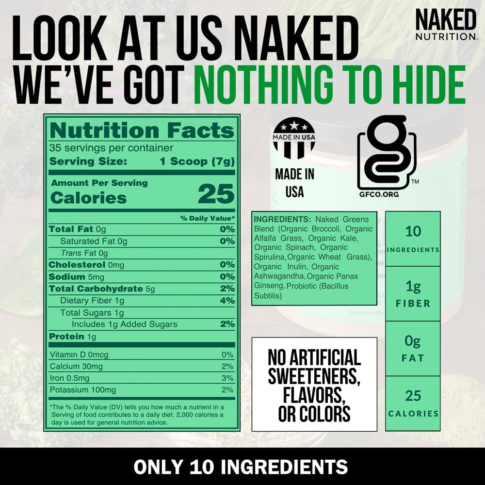 • ORGANIC SUPER GREENS: Naked Greens is a natural, energizing greens powder designed with select premium ingredients in effective amounts to enhance gut health and support optimal body function.