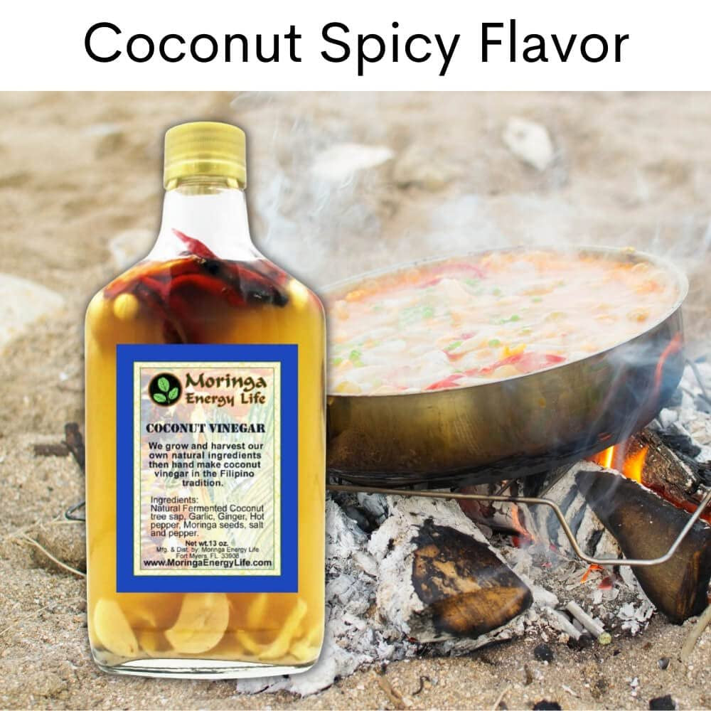 • This Moringa Energy Life Coconut vinegar is easier on the palate and is much less harsh than apple cider vinegar, which is often acidic in flavor. Natural Coconut vinegar is milder and more pleasant, also it does not have a coconutty flavor.