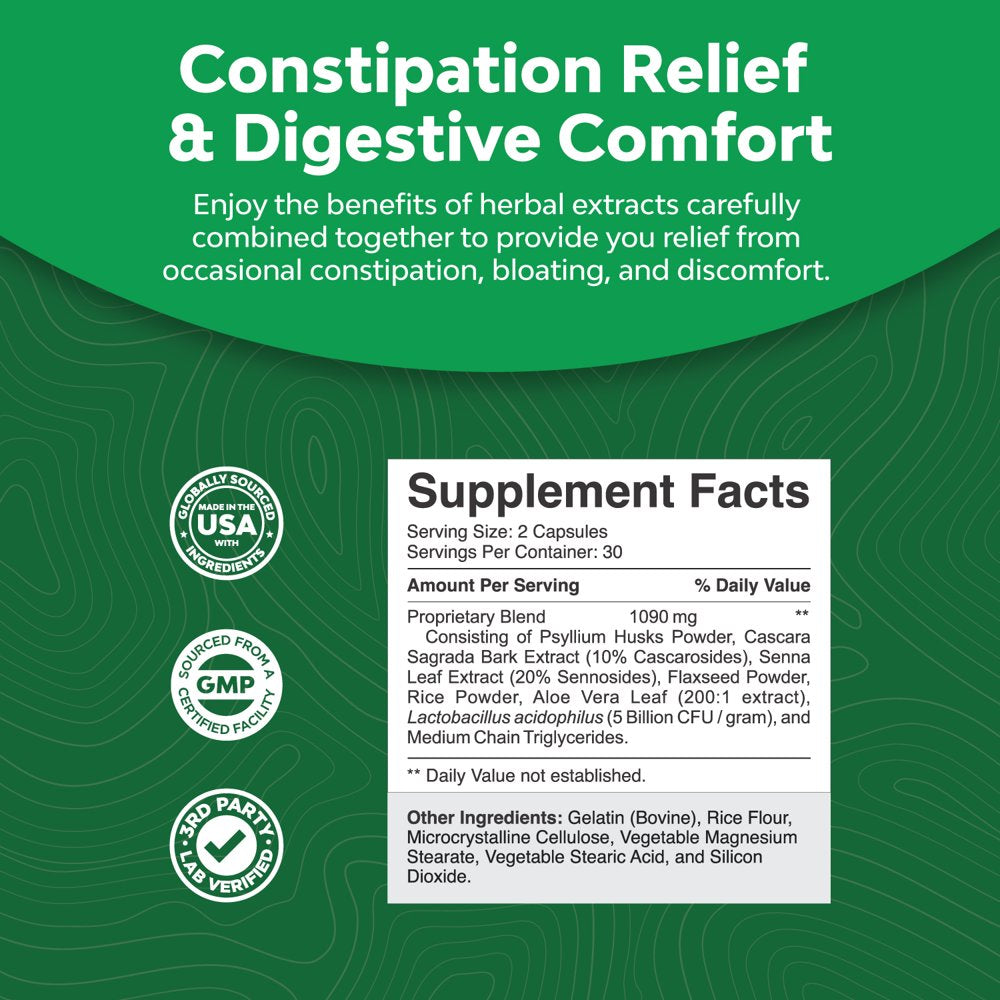 • Severe Constipation Relief - Get the relief you need with our natural laxatives for constipation fast acting herbal supplement also containing Lactobacillus acidophillus for advanced digestive support