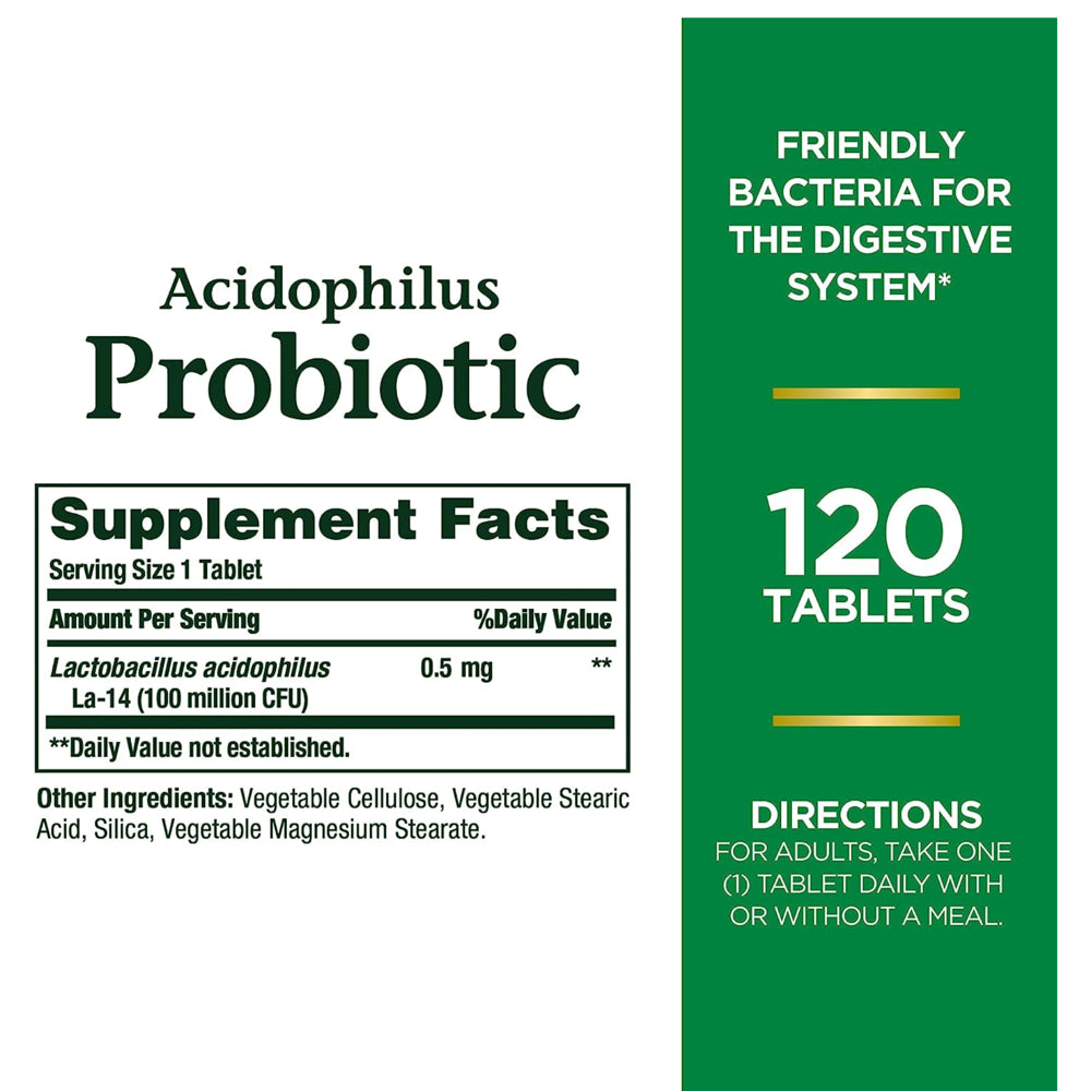 Nature’S Bounty Acidophilus Probiotic, Daily Probiotic Supplement, Supports Digestive Health, 2 Pack, 120 Tablets Each Bottle (240 Tablets Total)