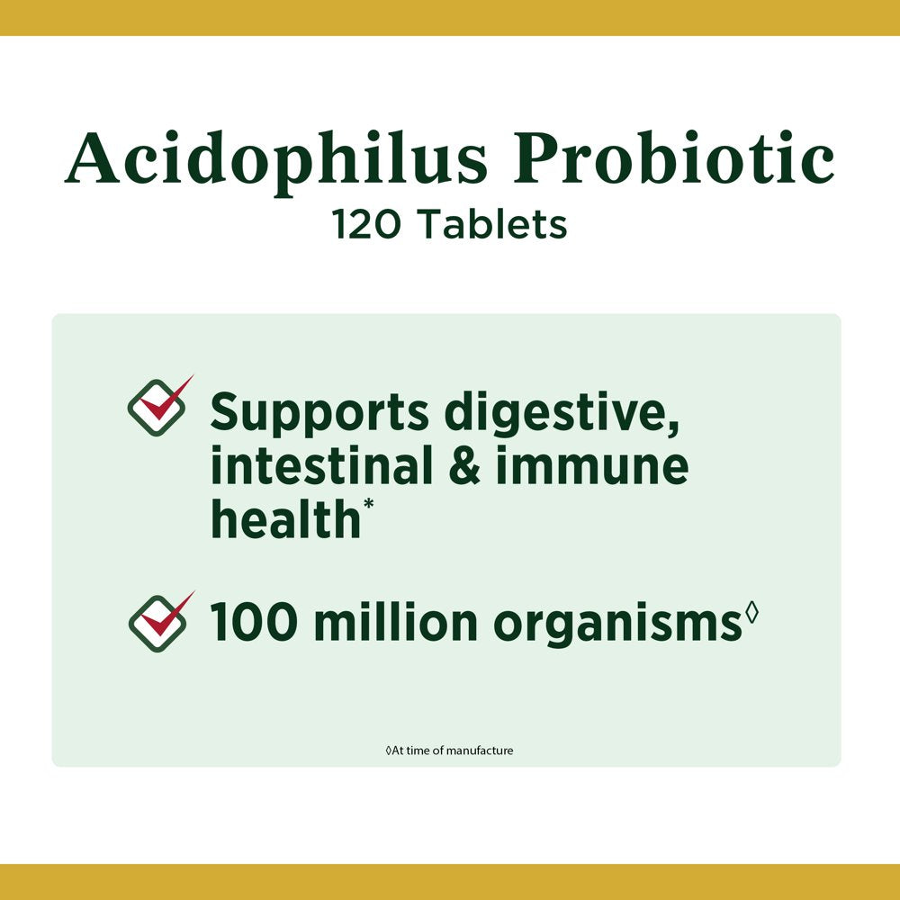 - Nature’s Bounty Acidophilus Probiotic Supplement, 120 Tablets: