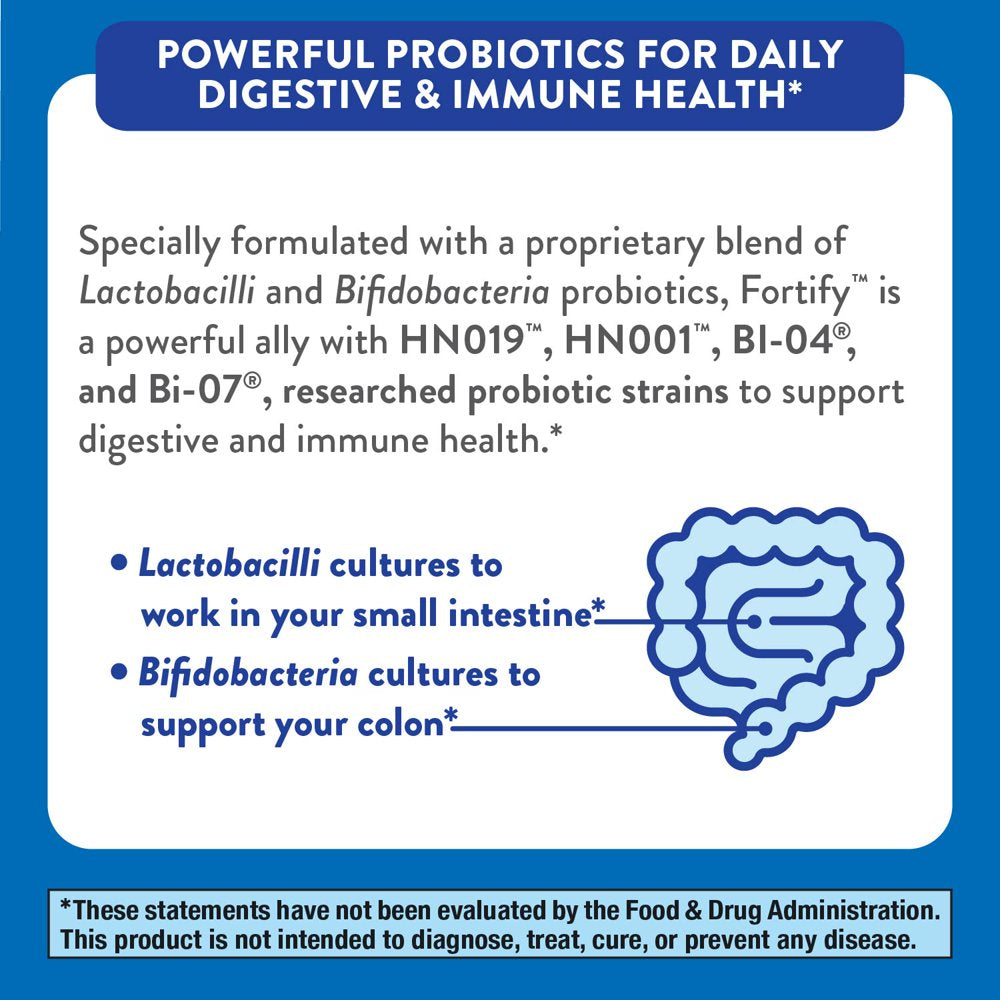 Fortify™ is a powerful ally with HN019™, Bl-04®, Bi-07®, and HN001™ researched probiotic strains to support digestive and immune health.*