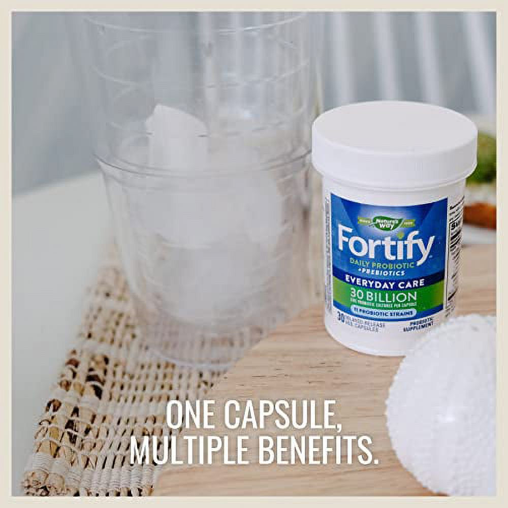 Nature’s Way Fortify Daily Probiotic for Adults, 30 Billion Live Cultures, 10 Strains, Prebiotics, 30 Capsules