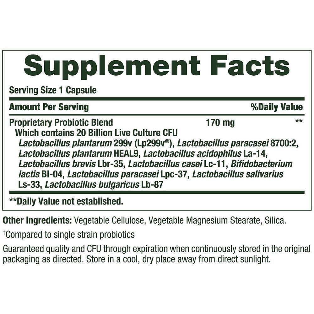 Nature’s Bounty Ultra Strength Probiotic 10 is the answer to your everyday probiotic needs. Shaped by over 20 years of clinical research, Probiotic 10 provides 20 billion live cultures and 10 times the diversity of probiotic strains to help supplement the natural diversity of your microbiome. Featuring clinically studied strains of probiotics, Probiotic 10 delivers good bacteria to your system. These strains aid in the body’s natural digestive process, and contribute to immune function and upper respiratory health, all in just one daily capsule.