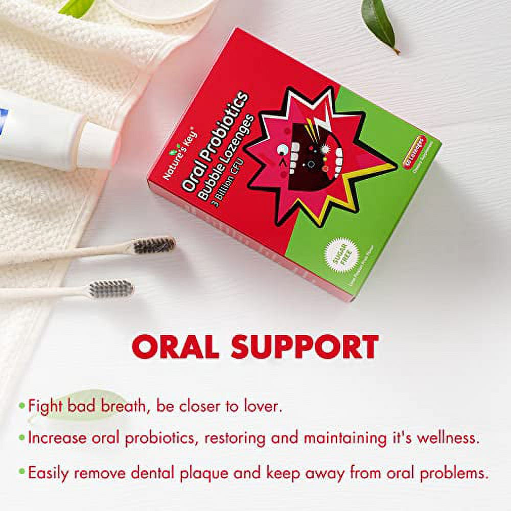 Nature's Key Oral Probiotic Bubble lozenges -3 Billion CFU Probiotics, Support Teeth & Gums Health and Fresh Breath (60 Count (Pack of 1))
