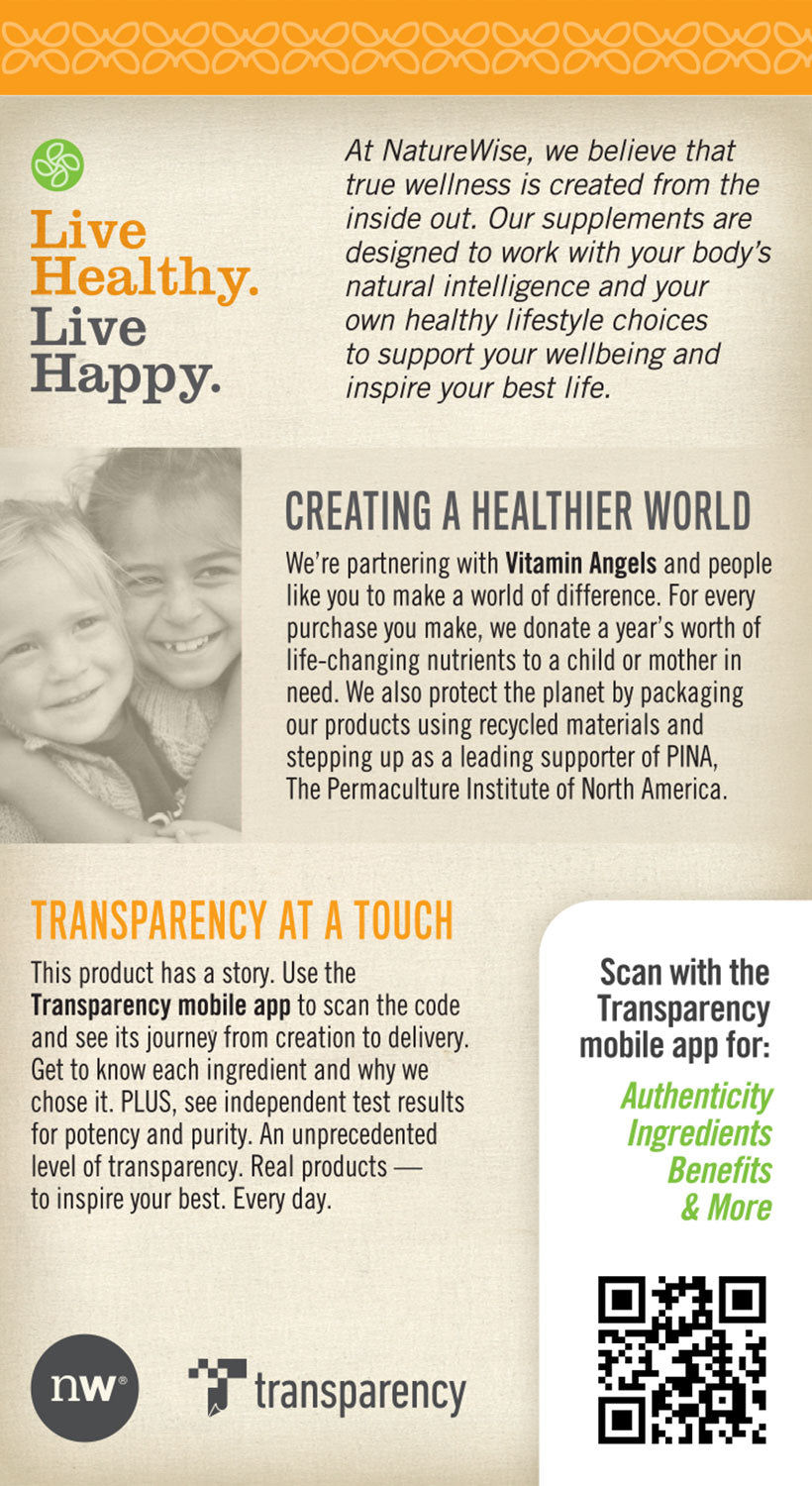 - TRANSPARENCY ENABLED: Scan any NatureWise product package with the Transparency app for instant access to in-depth product information.