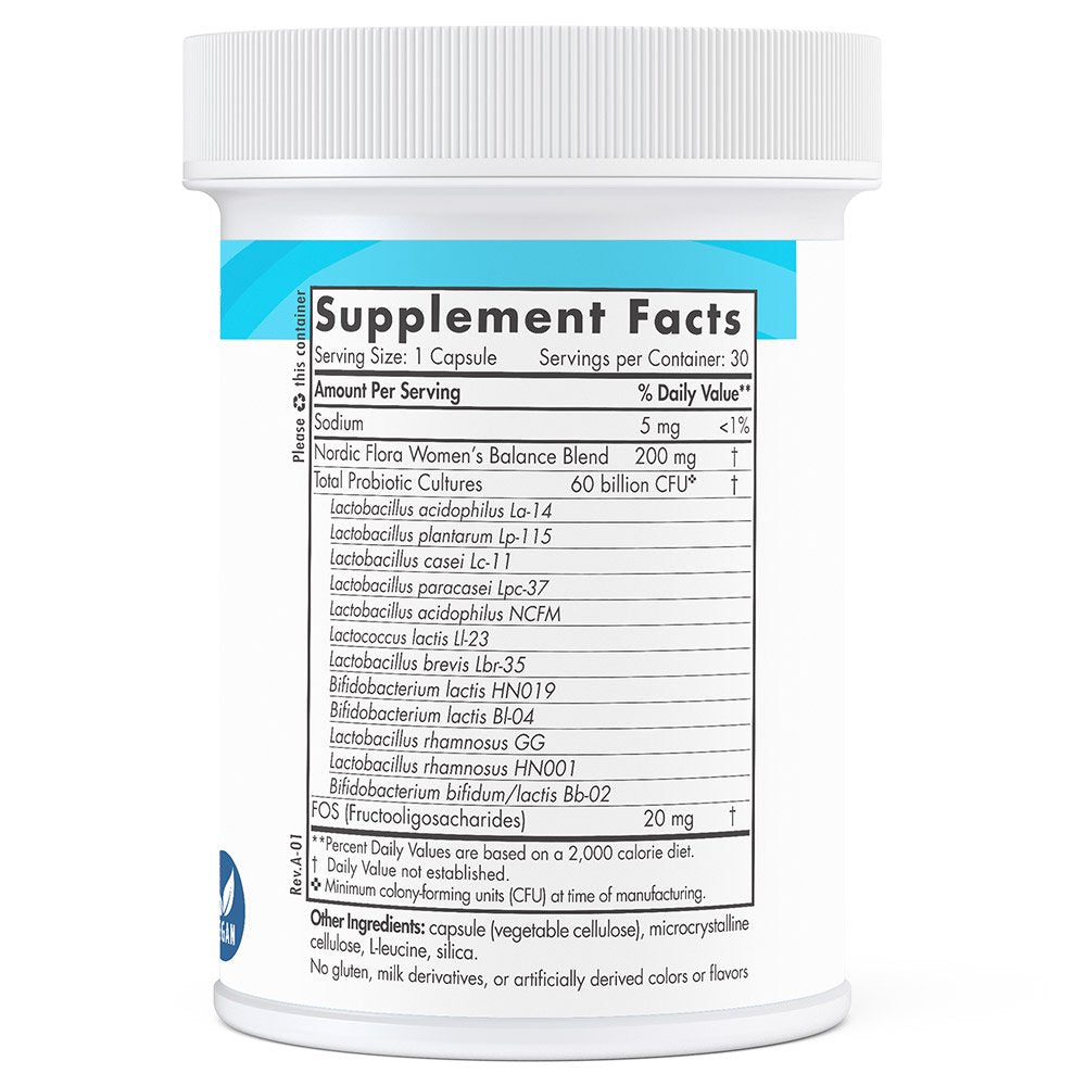 Nordic Naturals Nordic Flora Probiotic Women'S Balance, Capsules, Vegan, 30 Ct