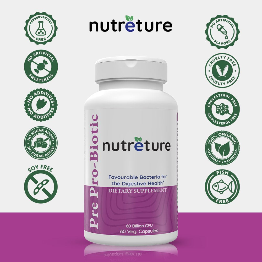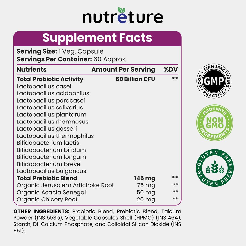 NUTRETURE 60 Billion Probiotics for Men | 60 Capsules Mens Probiotic Supplement | Prebiotics for Gut Health | Probiotics for Digestive Health