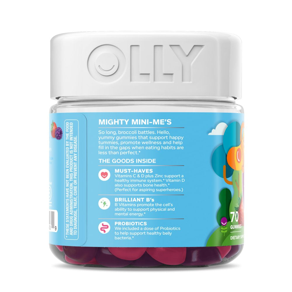 A win-win. OLLY kids multivitamins are packed with all the good stuff kiddos need to thrive, like Vitamins A, C, D, Bs and Zinc, in a delicious gummy they'll actually enjoy. The chewable daily vitamin for kids also delivers a super dose of probiotics to help support healthy belly bacteria and a strong immune system.*bOLLY kids vitamins are super delicious, scientifically formulated and gluten free. Kiddos 2-3 years, chew one vitamin daily and 4 years and up, chew two daily. No food or water needed.*Good health is at the center of everything we do. That's why we’ve made it our mission to make nutrition easy to understand. We do it by crafting products that are as effective as they are delicious—because we know when something feels good, you’re more likely to do it.*