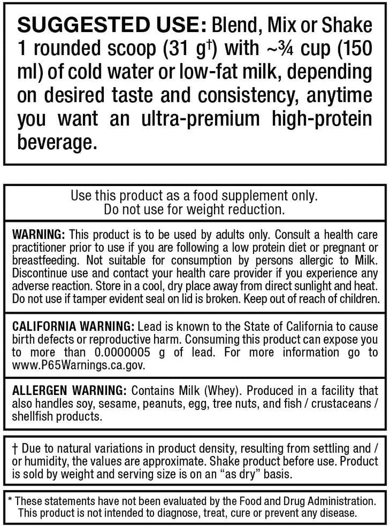 • 27g of Protein, 0g Fat and Zero Sugar added