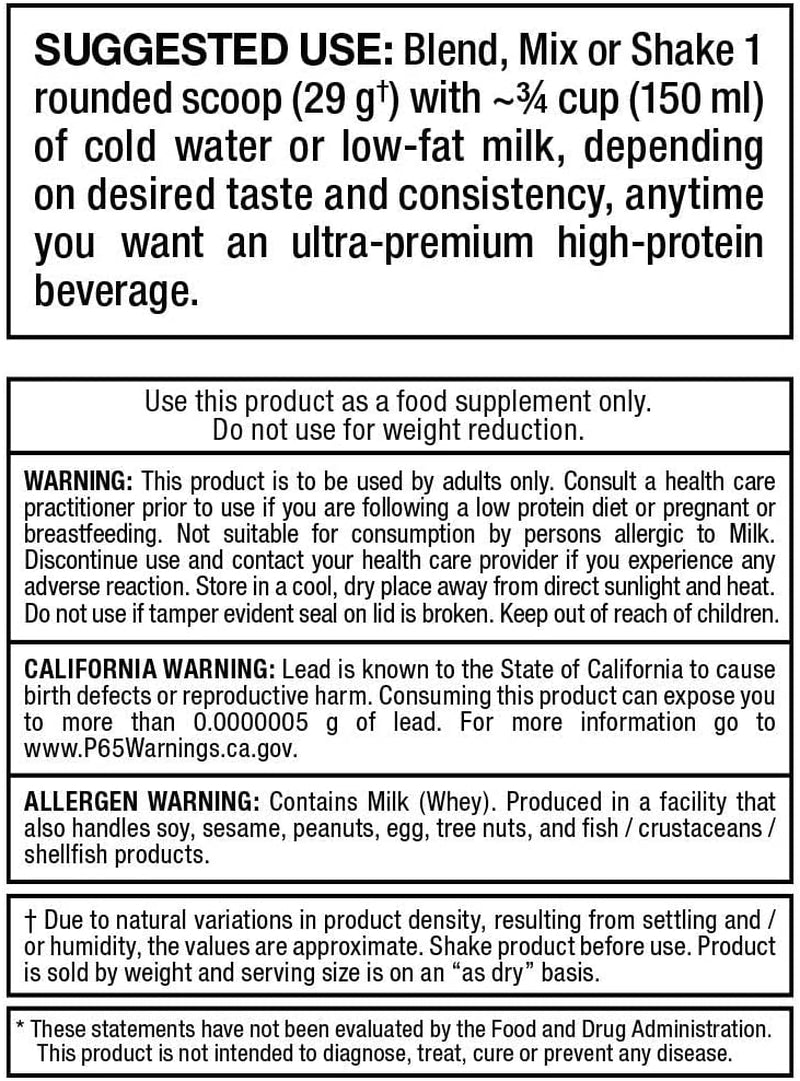 - 27g of Protein, 0g Fat and Zero Sugar added
