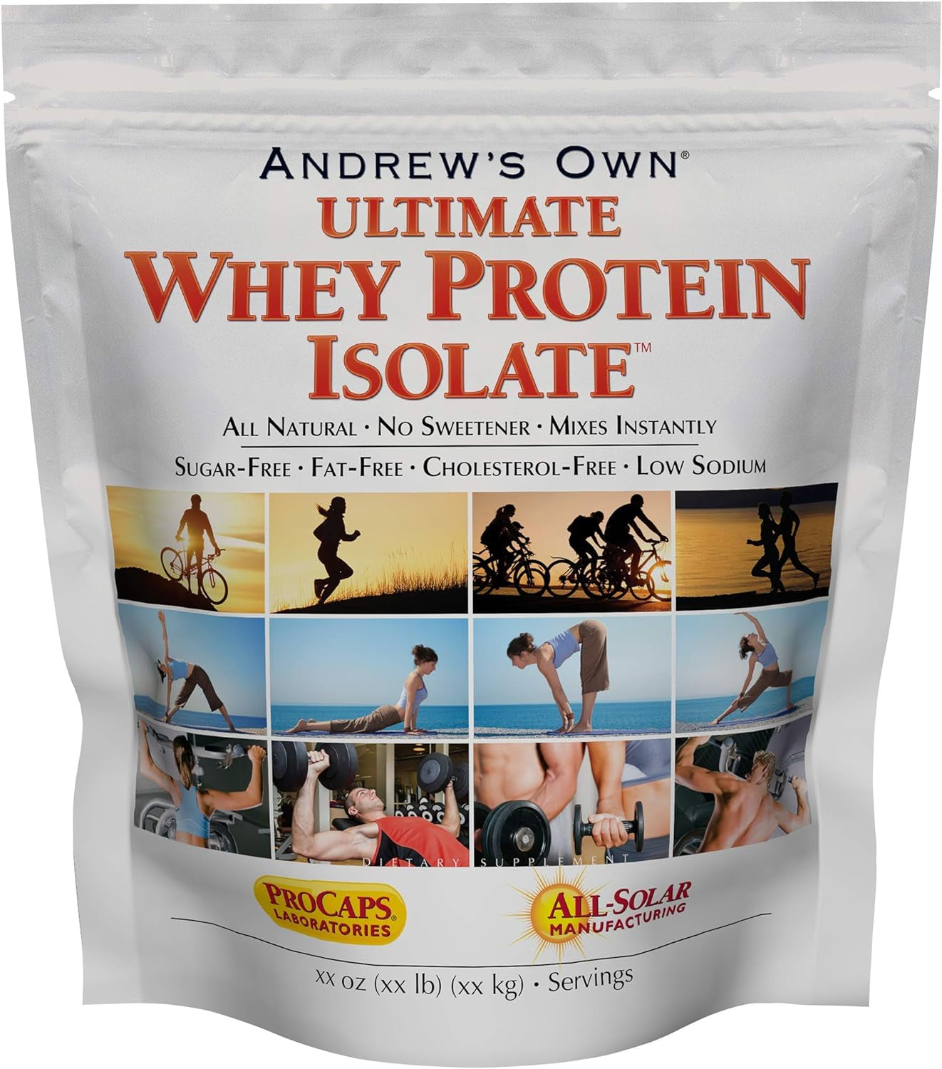Andrew's Own ULTIMATE WHEY PROTEIN ISOLATE is the result of Andrew's long search for the perfect whey protein. It contains an ideal balance of amino acids and mixes easily – even without a blender. It does not contain undesirable amounts of carbohydrate, lactose, sugar, saturated fat, cholesterol or sodium. It is non-GMO (Not Genetically Modified) and certified Kosher and Halal. Andrew apologizes for the delay in creating his own whey protein, but he knows that once you try it, you'll agree it was worth the wait.