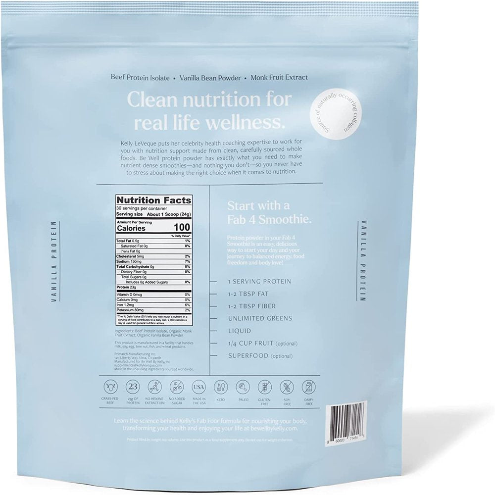 Be Well by Kelly - Swedish Grass-Fed Beef Protein Powder - Vanilla - 30 Servings