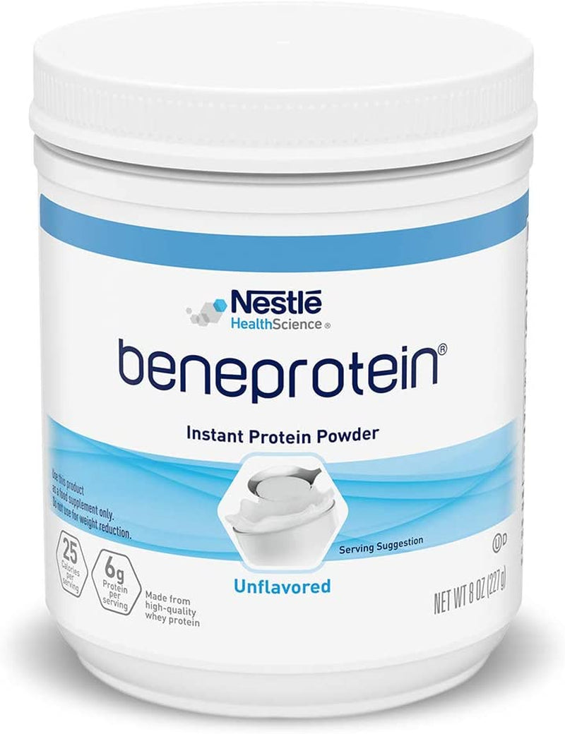 Nestle Nutrition Resource Beneprotein Instant Protein Powder.; Unflavored is a 100% high quality whey protein in unflavored and easy-to-mix powder that can be quickly and easily added to either hot or cold foods and beverages for additional protein to one's diet.