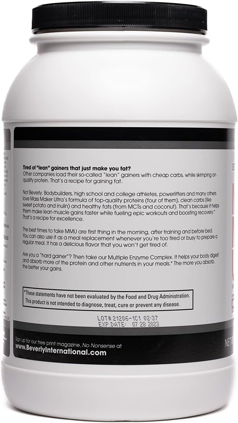 Beverly International Mass Maker Ultra Chocolate, 14 Servings, 3Lb. Build Lean Mass like a Pro!! Milk Protein Isolate, Whey Protein Isolate + Egg. MCT Oil. Clean Carbs, Great Taste! - Chocolate is backordered and will ship as soon as it is back in stock.