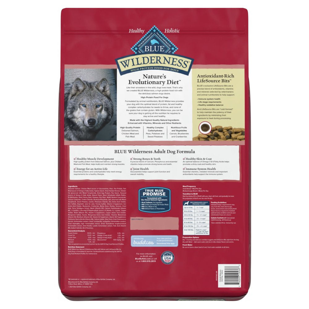 Blue Buffalo Wilderness High Protein Salmon Dry Dog Food for Adult Dogs, Grain-Free, 11 Lb. Bag - 11 Lbs is backordered and will ship as soon as it is back in stock.