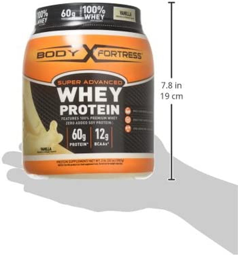 - One 2 lb container of Body Fortress Vanilla Super Advanced Whey Protein Powder