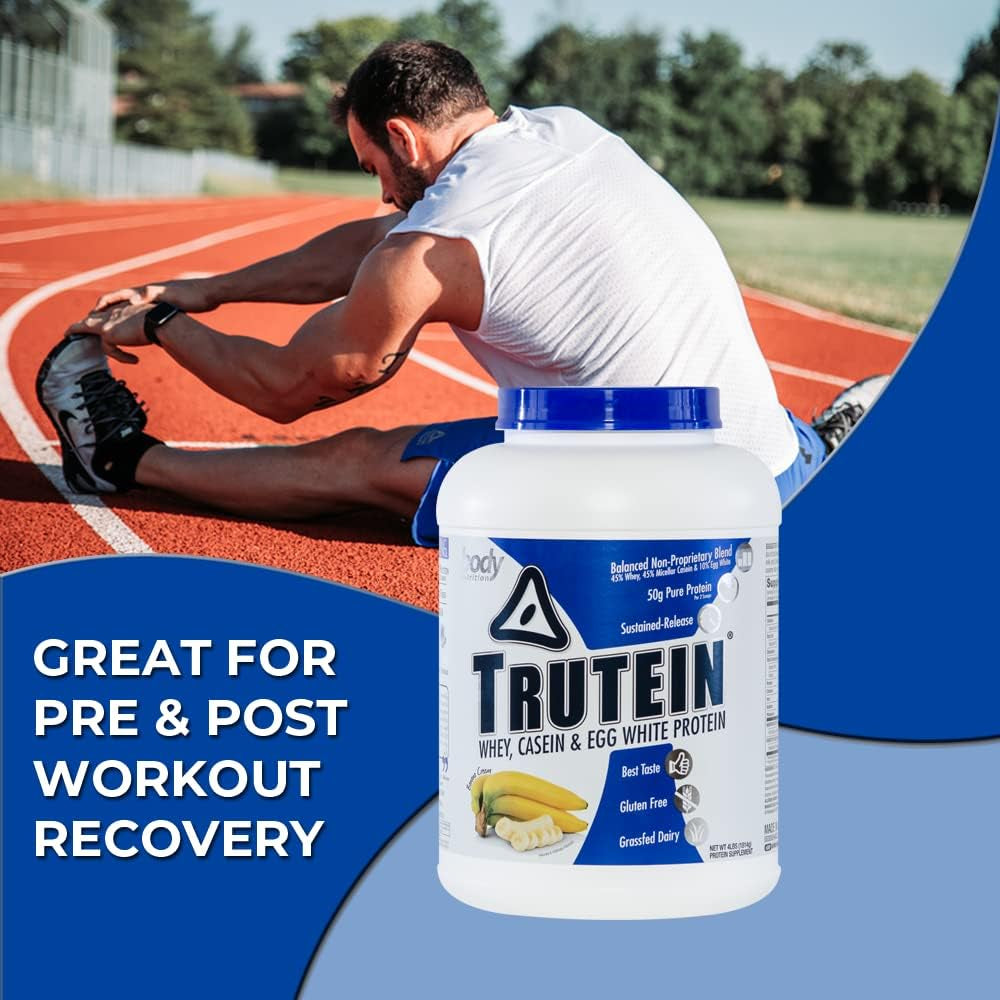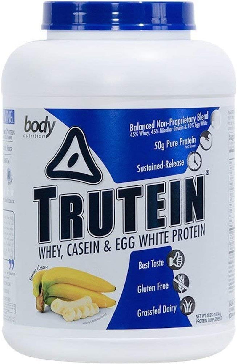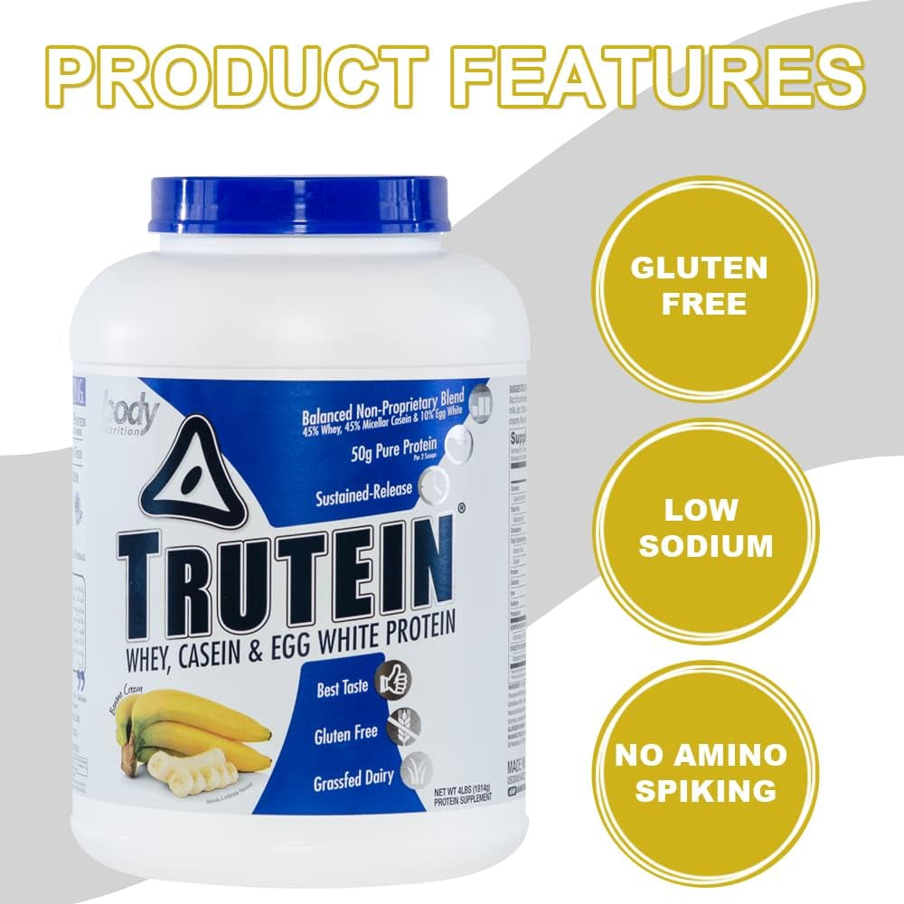 Body Nutrition Protein Powder - Trutein Banana Cream 4Lb Whey, Casein & Egg White - Natural Low Carb Keto Friendly Drink - Zero Sugar - Lean Muscle Builder, Weight Loss, Workout, Recovery