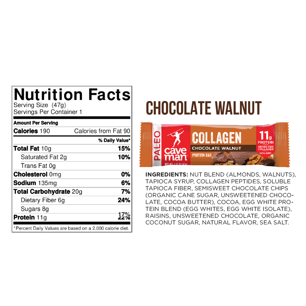 Caveman Collagen Chocolate Walnut Protein Bar - 12 is backordered and will ship as soon as it is back in stock.