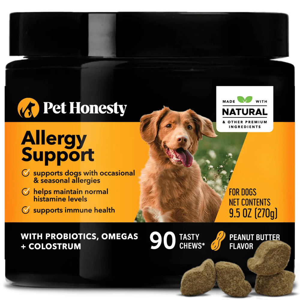 - Supports Normal Histamine Response for Dogs with Seasonal Allergies - Pet Honesty's AllergySupport chews combine natural ingredients to support a healthy immune system, a normal histamine response for dogs with seasonal and occasional allergies.