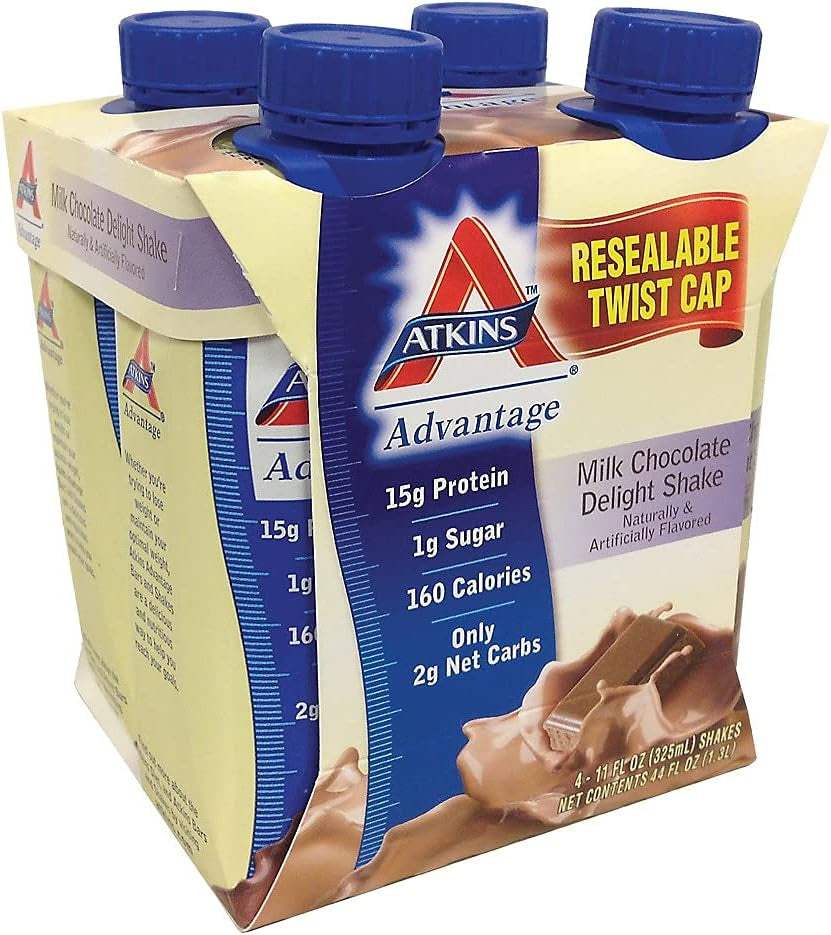 Atkins Milk Chocolate Delight Protein-Rich Shake. Rich and Creamy with Protein. Keto-Friendly and Gluten Free, 11 Fl Oz (Pack of 4)