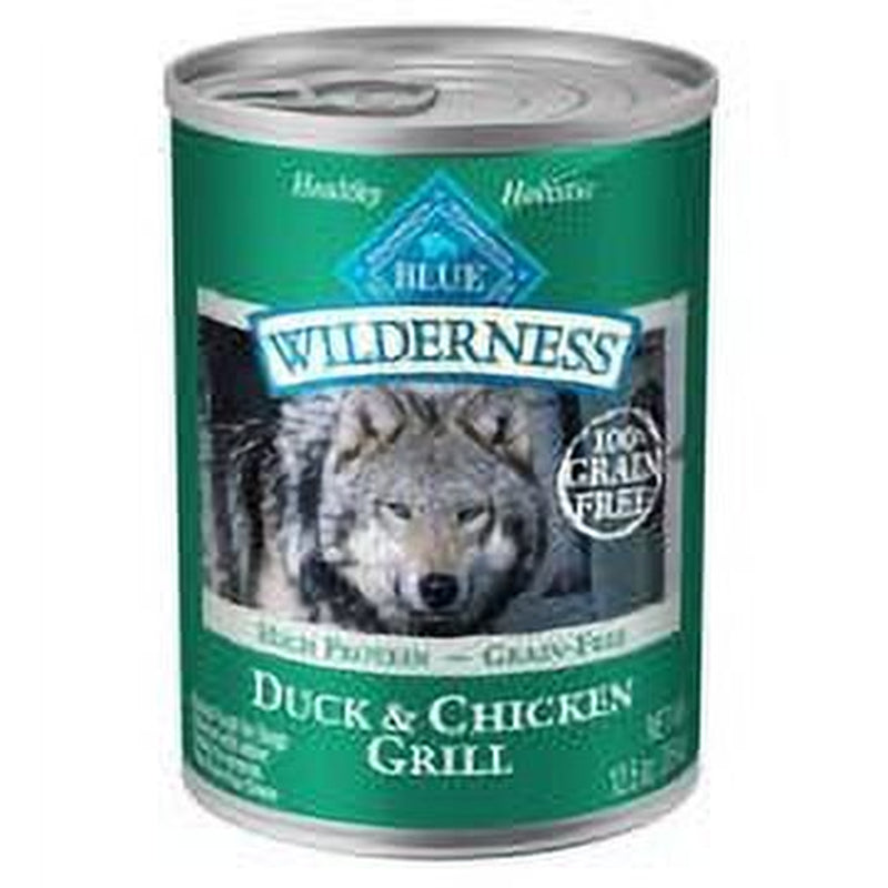 Blue Buffalo Wilderness High Protein Grain Free, Natural Adult Wet Dog Food, Duck & Chicken Grill 12.5-Oz Can (Pack of 12)