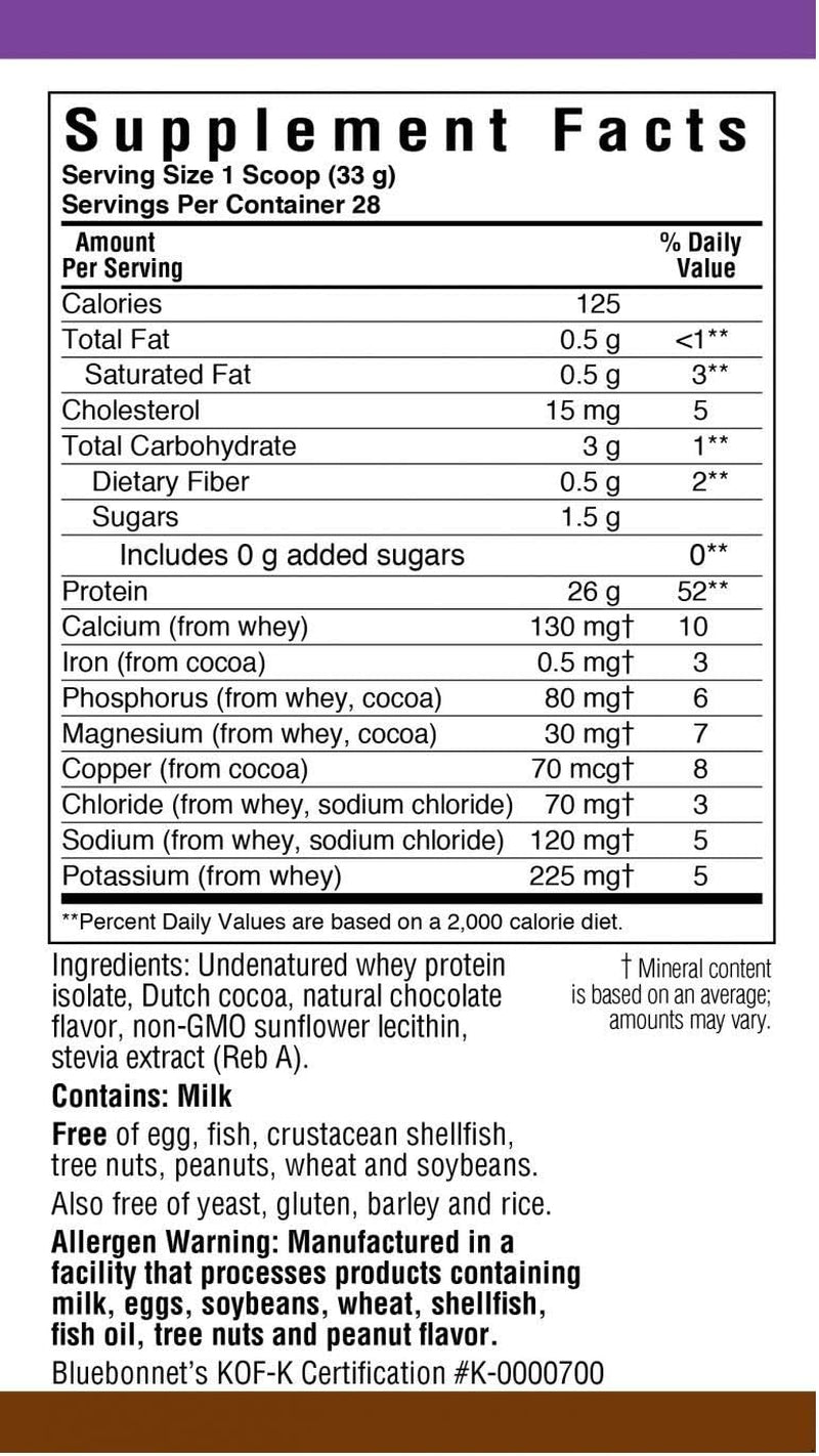 Bluebonnet 100% Natural Whey Protein Isolate Powder, Chocolate, 2 Pound