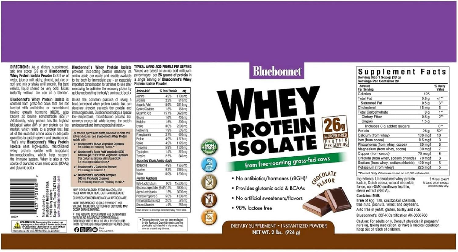 Bluebonnet 100% Natural Whey Protein Isolate Powder, Chocolate, 2 Pound - Chocolate / 2 Pound (Pack Of 1) is backordered and will ship as soon as it is back in stock.