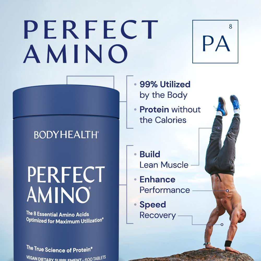 Bodyhealth Perfectamino (600 Tablets) 8 Essential Amino Acids Supplements with BCAA, Increase Muscle Recovery, Boost Energy & Stamina, 99% Utilization, Vegan Branched Chain Protein Pre/Post Workou