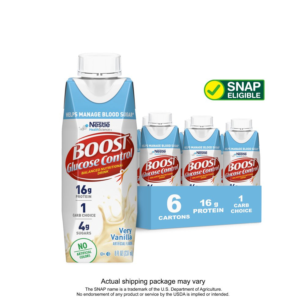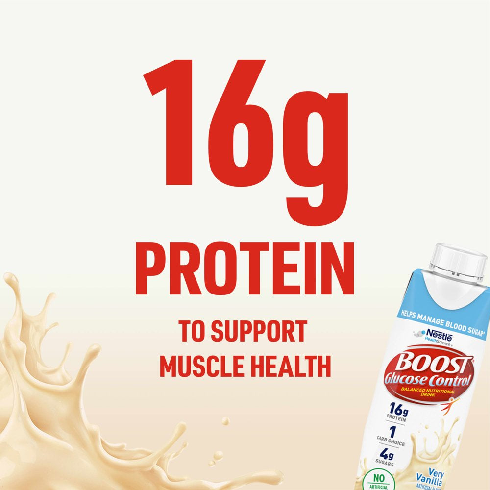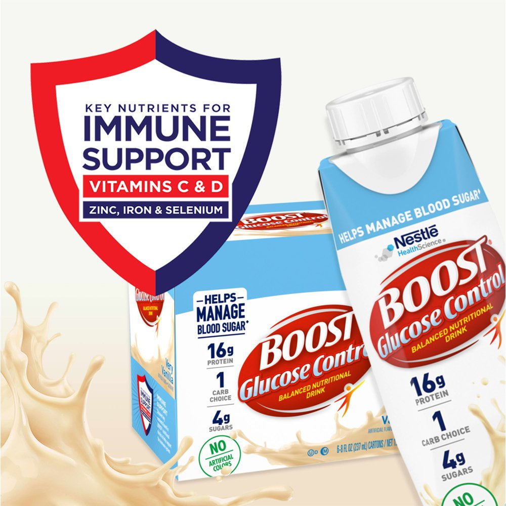 BOOST Glucose Control Nutritional Drink, Very Vanilla Nutritional Shake, 16 G Protein, 6 - 8 Fl Oz Cartons