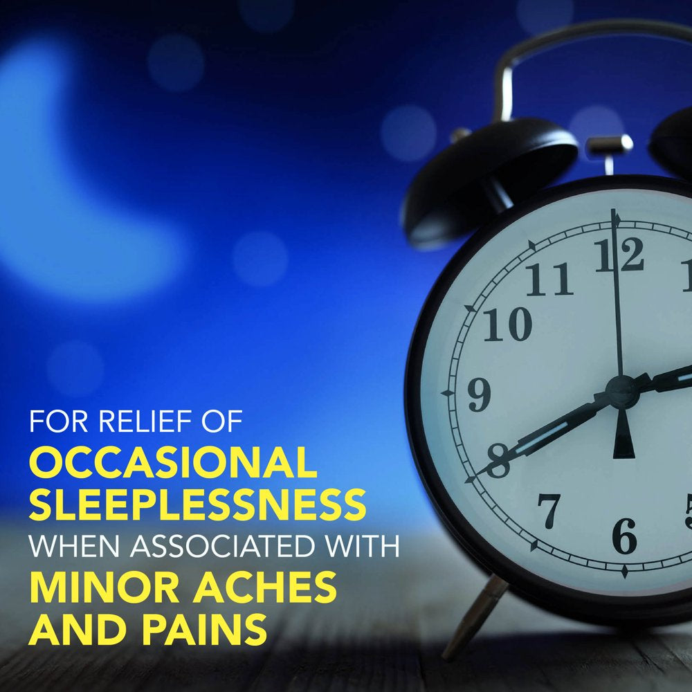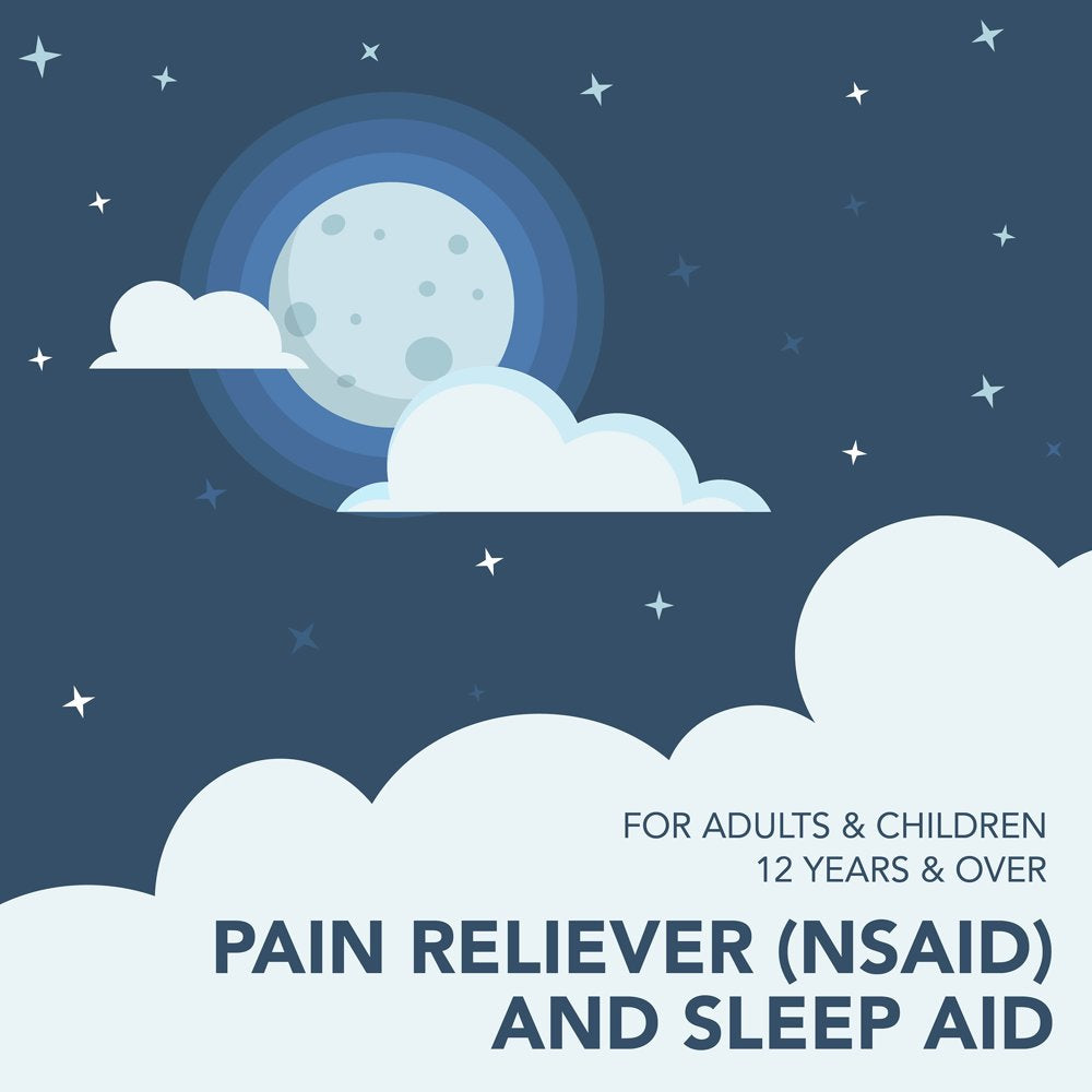 - Nighttime sleep aid: This product contains a combination of a nighttime sleep-aid and a pain reliever (NSAID) that provides relief of occasional sleeplessness when associated with minor aches and pains