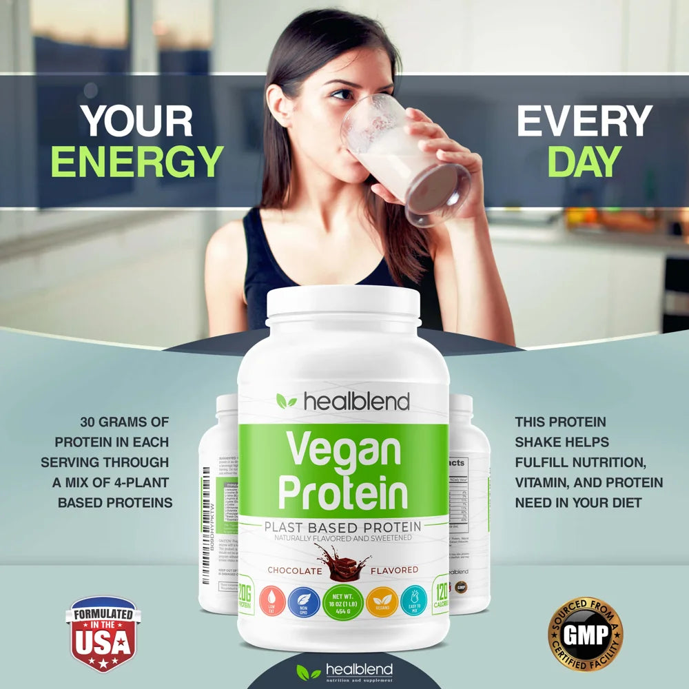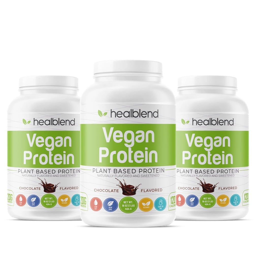 Healblend Organic Vegan Protein Powder - Plant Based Pea Protein Isolate Gluten-Free, Non-Gmo, Erythritol-Free, Soy-Free, Dairy-Free, Chocolate Flavor - 1Lb 3-Pack - 3-Pack is backordered and will ship as soon as it is back in stock.