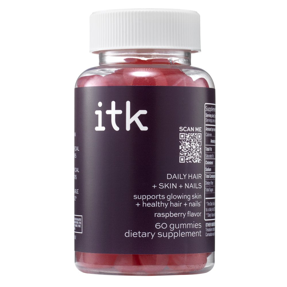 ITK Daily Hair + Skin + Nails Supplement Gummies with Biotin | Raspberry | 30-Day Supply, 60 Ct