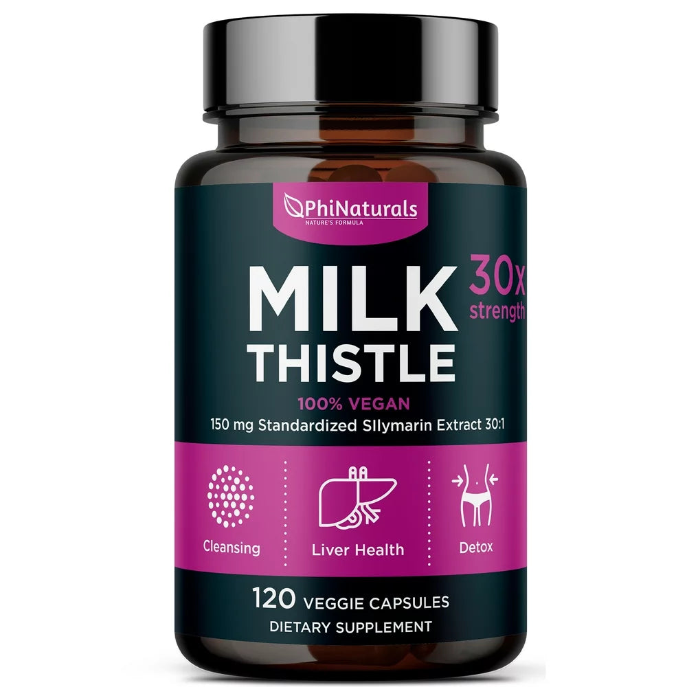 | Product Name | Milk Thistle Silymarin 30x Extract Supplement (Standardized 30:1) by Phi Naturals | 150 mg Per Capsule - 120 Capsules | Supports Liver Cleanse, Detox and more |