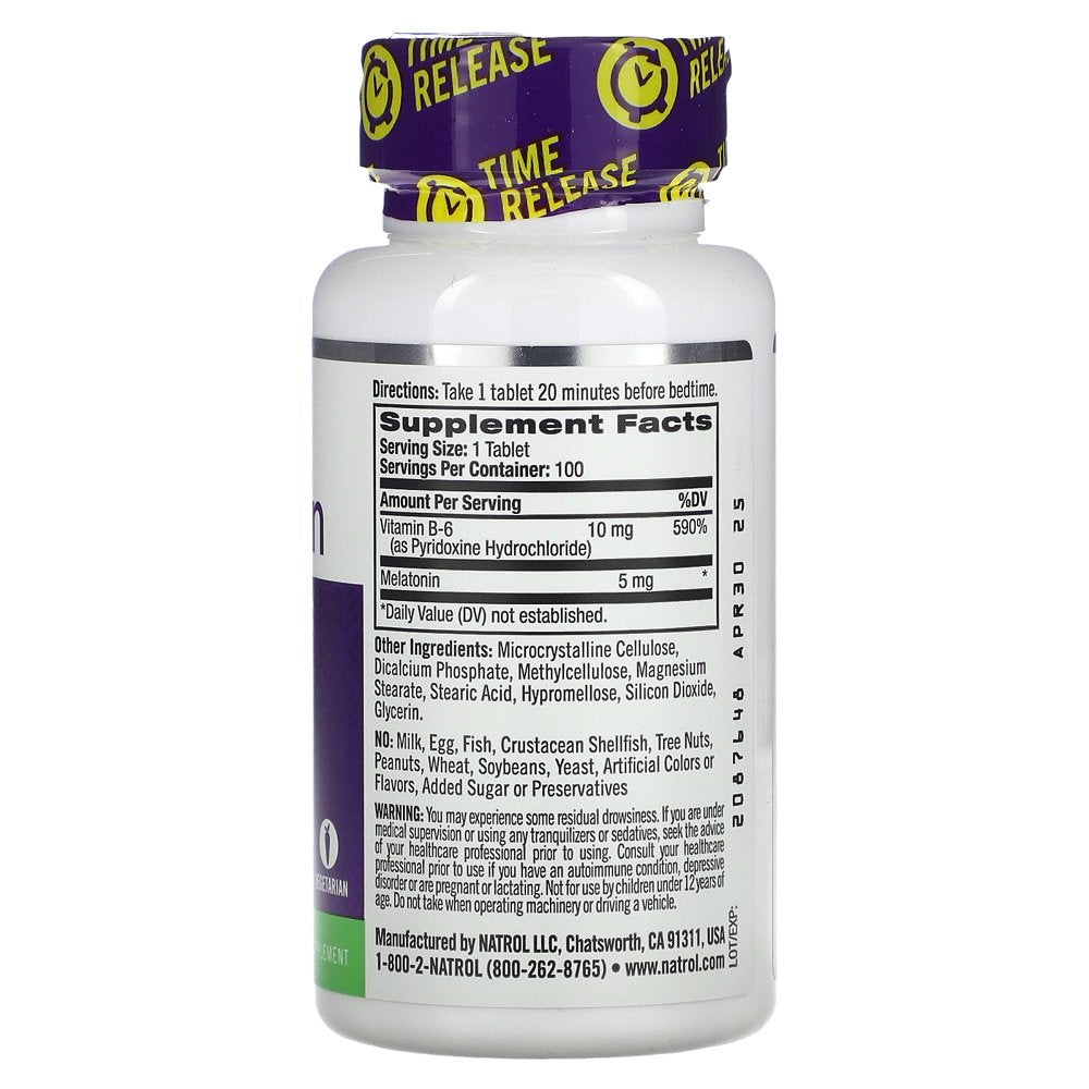 Natrol, Melatonin, Time Release, Extra Strength, 5 Mg, 100 Tablets