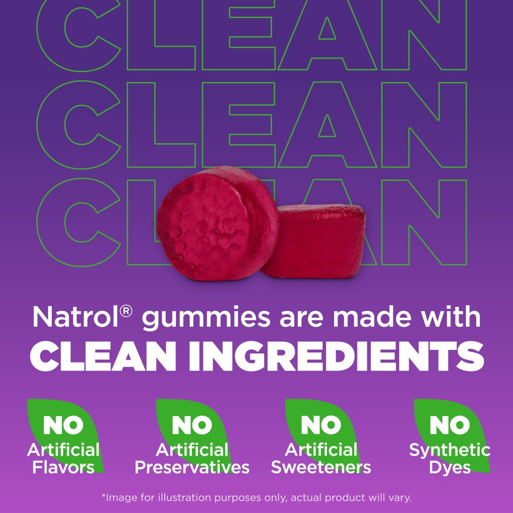 - Less Sticky: Natrol Gummies are pectin based and contain no gelatin, so they are less sticky than gelatin gummies.