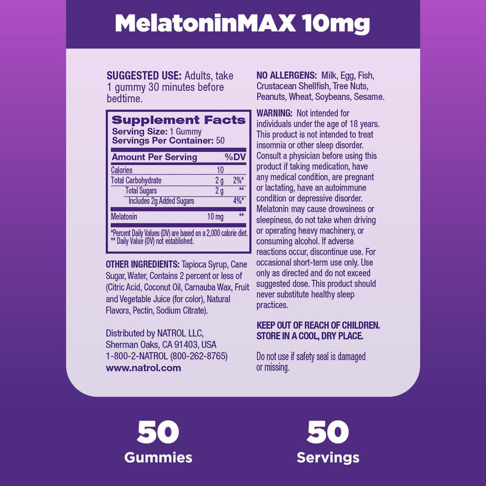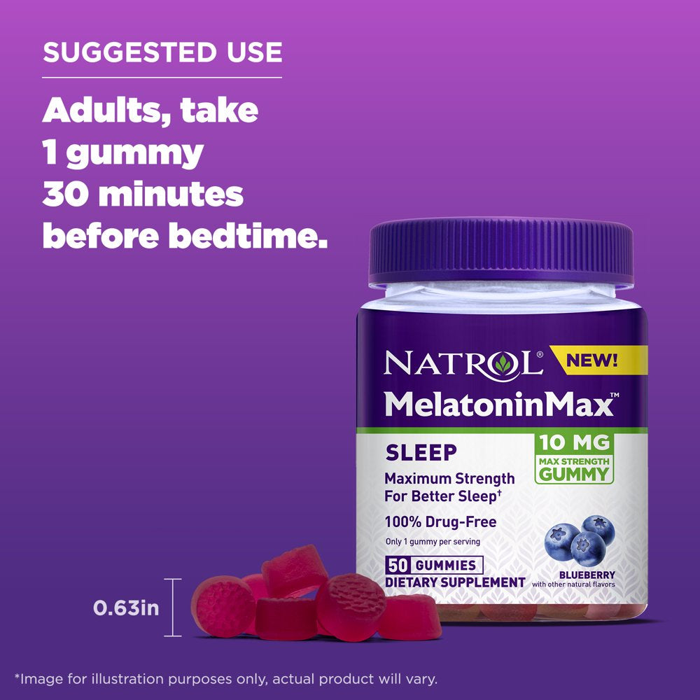 - MelatoninMax is the strongest sleep aid gummy supplement from Natrol with 10mg of 99% Pure Melatonin in every gummy.*