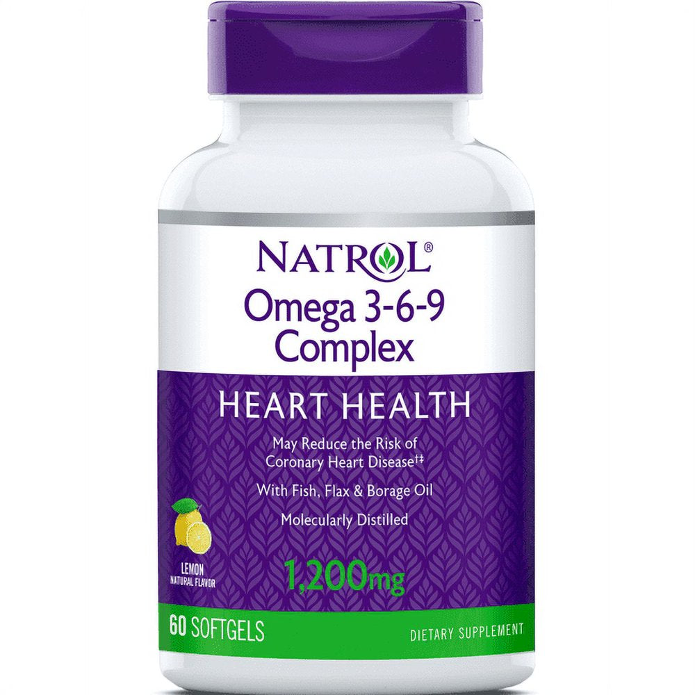 Natrol Omega 3-6-9 Complex - 60 Softgels Natrol Omega 3-6-9 Complex with natural lemon oil, combines fatty acids from both grain and marine sources for a healthy balance of essential fats in one single product. Natrol Omega 3-6-9 Complex's unique combination of essential fatty acids (EFAs) helps support numerous functions in the body including cardovascular and cognitive health, as well as, healthy skin and hair.