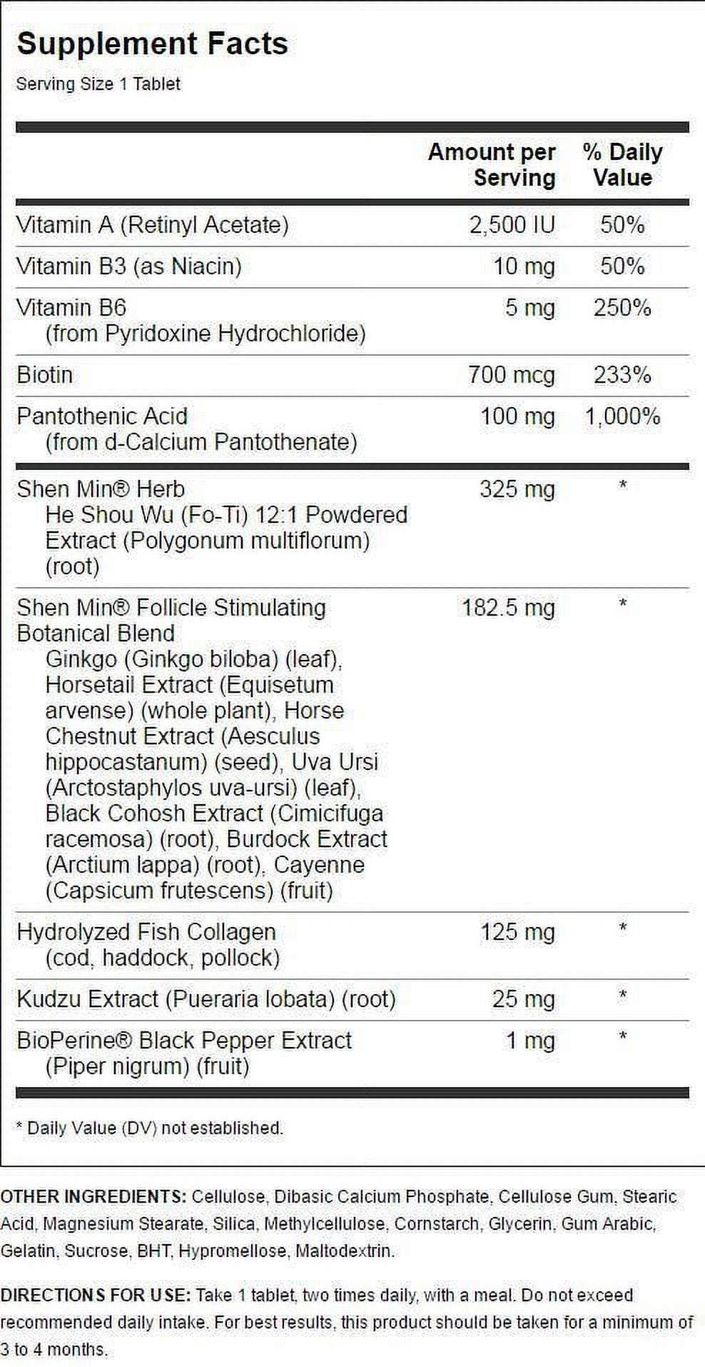 Advanced Formula Hair Nutrient 100% Natural Herbal Blend Dietary Supplement 30 Day Supply Natrol Family of Brands Advanced Women's Hair Strengthening Formula We have combined a revolutionary combination of Traditional Chinese Medicine with modern science to create the latest breakthrough in achieving full, lustrous and healthy hair. By combining a powerful mixture of herbs such as He Shou Wu and Horse Chestnut Extract with vital hair energizing co-factor nutrients such as Vitamin B, Biotin and more, Shen Min Advanced Women's Formula supports healthy hair appearance and thickens hair naturally!