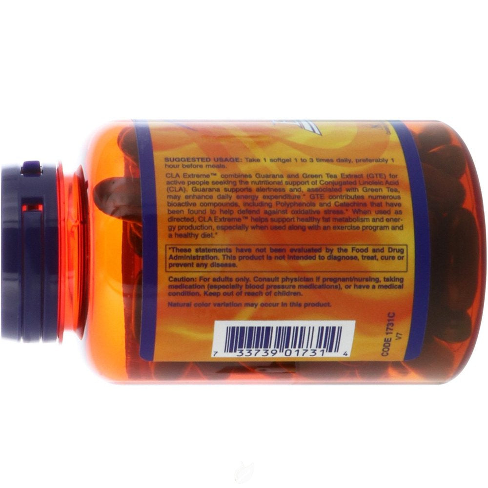 CLA Extreme combines guarana and green tea extract (GTE) for active people seeking the nutritional support of conjugated linoleic acid (CLA). Guarana supports alertness and, associated with green tea, may enhance daily energy expenditure.* GTE contributes numerous bioactive compounds, including polyphenols and catechins that have been found to help defend against oxidative stress.* When used as directed, CLA Extreme helps support healthy fat metabolism and energy production, especially when used along with an exercise program and a healthy diet.* Take 1 softgel 1 to 3 times daily with food.