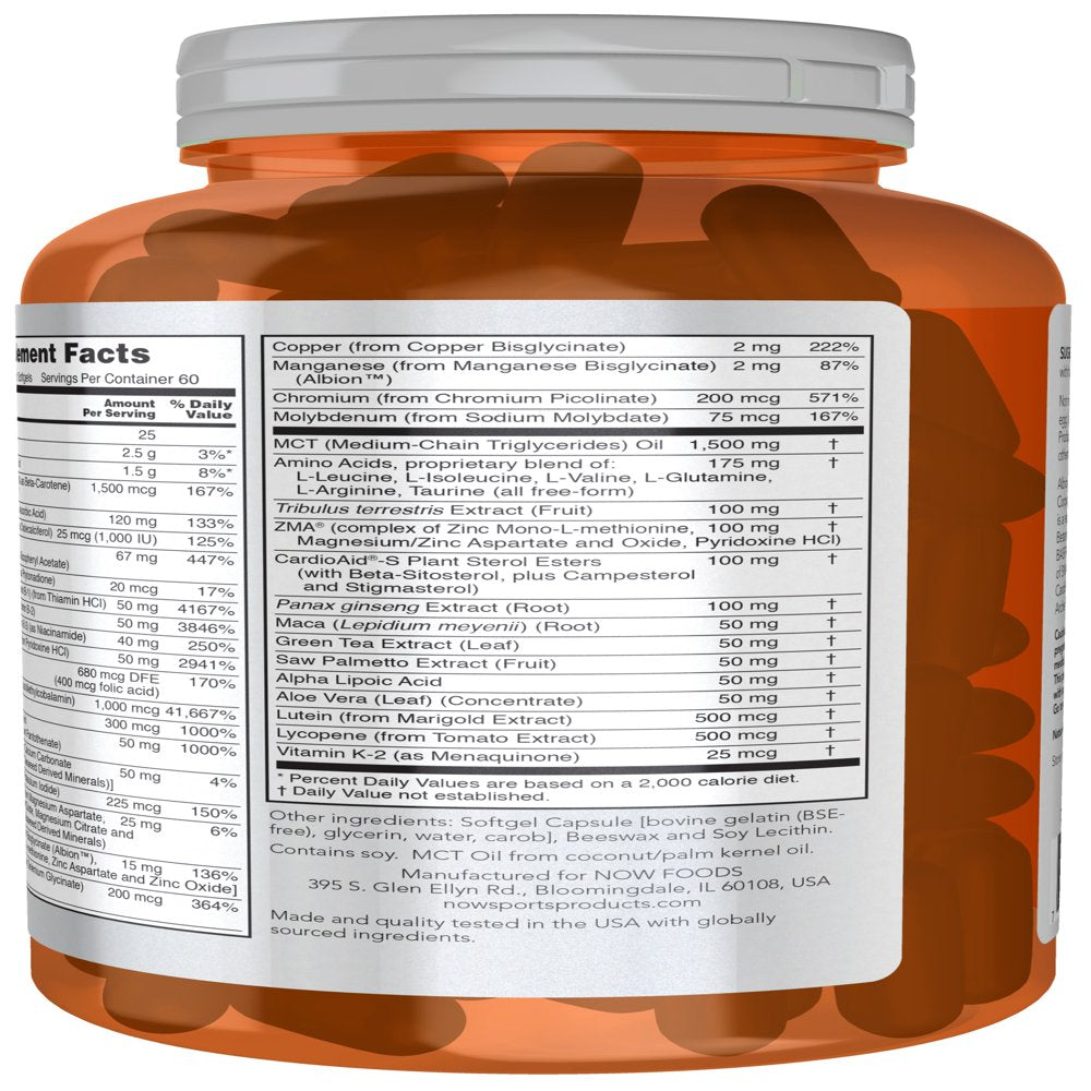 NOW Sports Nutrition, Men'S Extreme Sports Multi with Free-Form Amino Acids, ZMA®, Tribulus, MCT Oil, and Herbal Extracts, 180 Softgels
