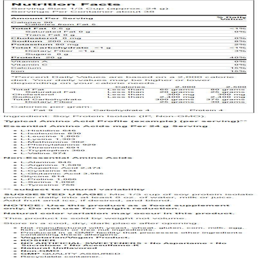 - PURE PROTEIN POWDER: Soy Protein Isolate is a good vegetable source of high-quality complete protein that has an excellent amino acid profile.