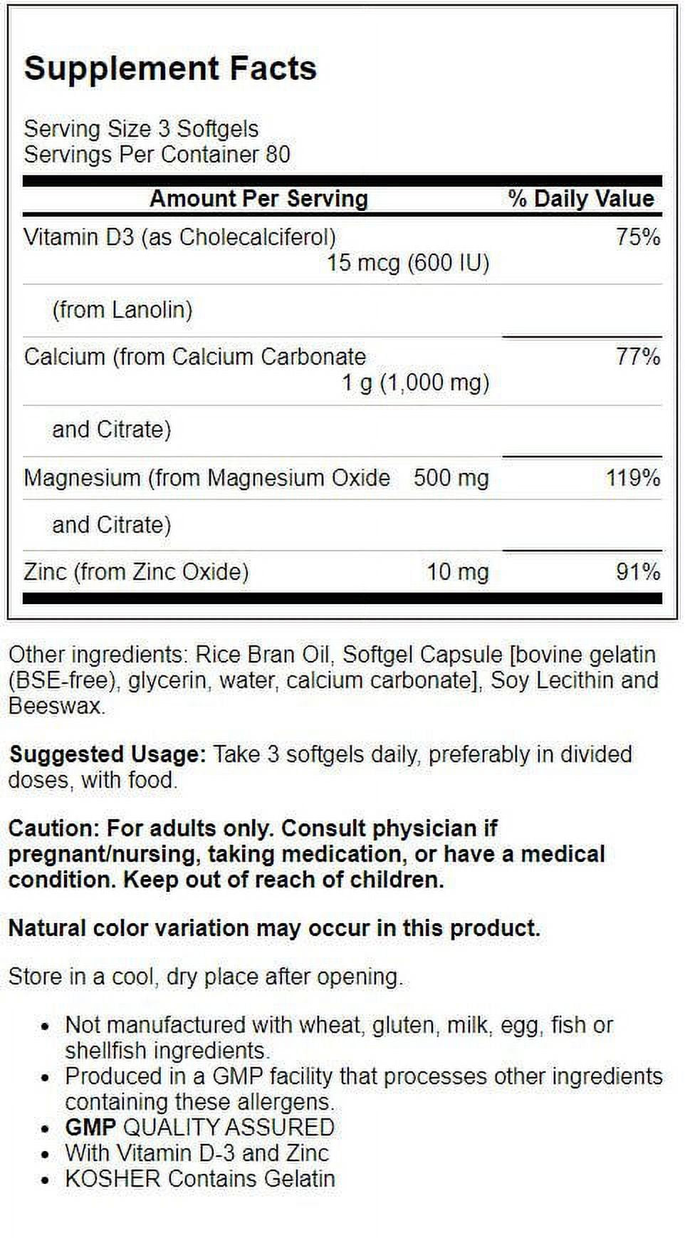 - WITH VITAMIN D-3 AND ZINC: Calcium & Magnesium Softgels include vitamin D-3 and zinc, offering a truly balanced blend of essential minerals.