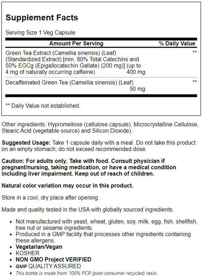 - FREE RADICAL SCAVENGER*: One capsule of NOW® Green Tea Extract with 200 mg EGCg/80 percent catechins possesses the phytonutrient content equal to about 2-3 cups of green tea. Green tea's bioactive compounds include polyphenols and catechins, which are known to exhibit potent free radical neutralizing properties.*