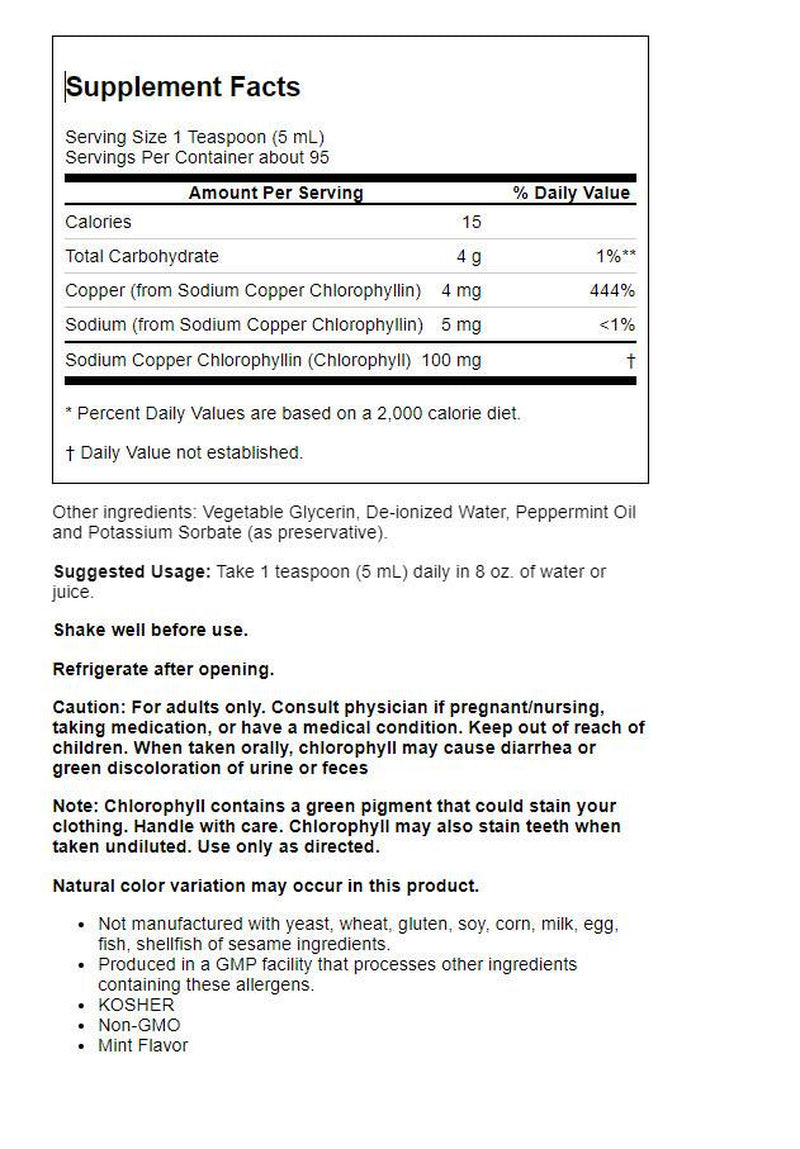 Chlorophyll is a green pigment naturally produced by plants and algae and gives them their characteristic green color. Chlorophyll is critical for photosynthesis, the process by which sunlight is converted into chemical energy. Chlorophyll can function as a free radical neutralizer, may help to support the body's detoxification processes and has been traditionally used as an internal deodorizer.* This water-soluble extract is in the form of sodium copper chlorophyllin. Natural color variation may occur in this product.