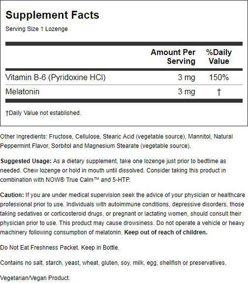 - CHEWABLE/FAST ABSORPTION*: Melatonin is a potent free radical scavenger naturally produced in the pineal gland.* Take 1 NOW® Melatonin lozenge just prior to bedtime as needed.