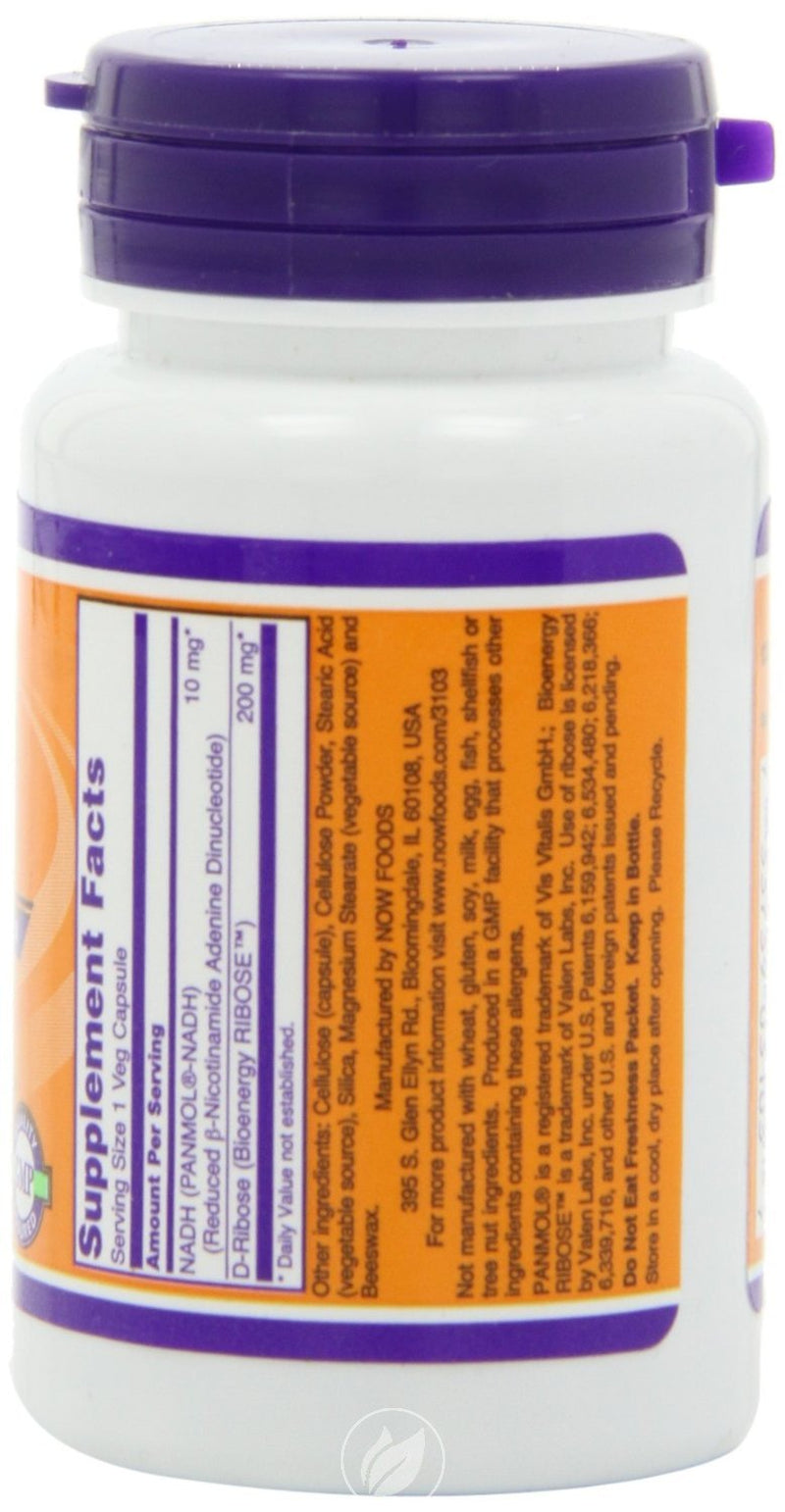 NOW Supplements Nadh 10Mg With 200Mg Ribose 60 Vcaps