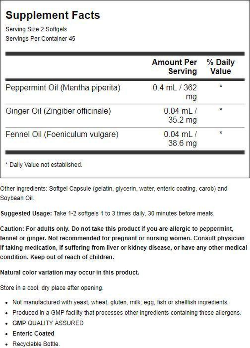 - INTESTINAL COMFORT FORMULA*: Peppermint oil has been recommended for centuries by traditional herbalists for the support of healthy digestion.*